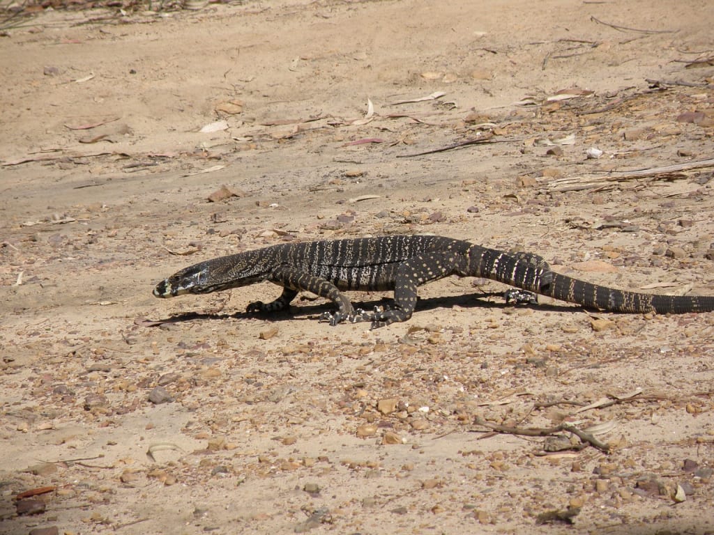He rounds the hill to see the final stretch into camp and smiles at the central fire burning, waiting patiently, for his kill. Without a word, he walks up to the coals and slings the goanna upon the heat, relishing the sizzle.