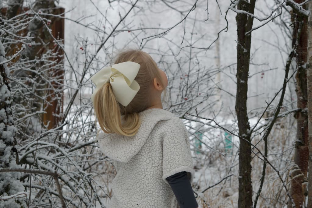 A massive white beast seemed to materialize in front of her. It stood like a man but was twice as tall as her dad and covered head to toe in fur. It then stooped down, looked her in the eye, and motioned for her to follow. She was not afraid and followed.