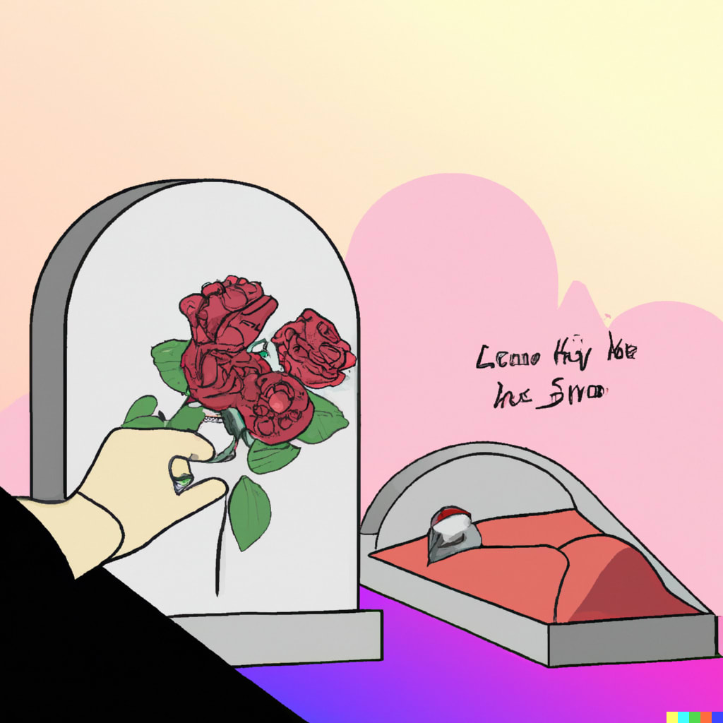 Suddenly, the door to the mausoleum swung open and a figure emerged from the darkness inside. It was a woman, dressed in a long, white gown. She had long, flowing hair and a gentle, almost ethereal, presence about her.