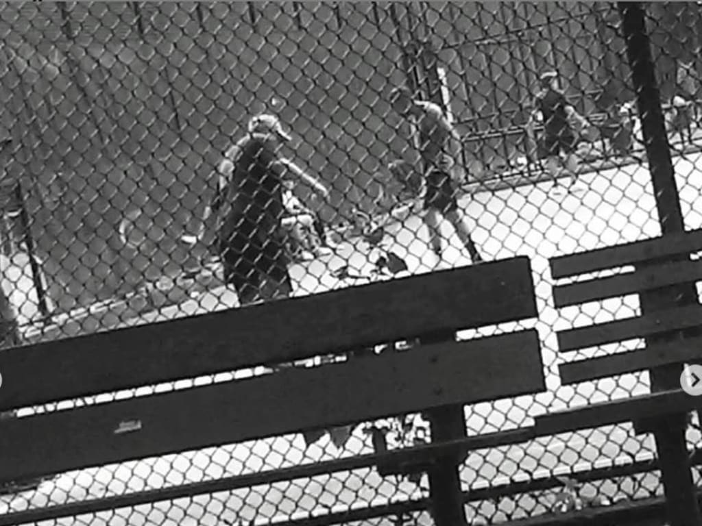 Even though they got the nets up but the Parks Department wouldn’t unlock the gates. Public Service Announcements were streaming about how to conduct behavior on the courts when players would be allowed back, like any player would pay attention to the suggestions. So some player unhinged the bolts at the corner pole of the fence and rolled back the links enough so that anyone could scrunch down and ease through, and everyone went in that way.