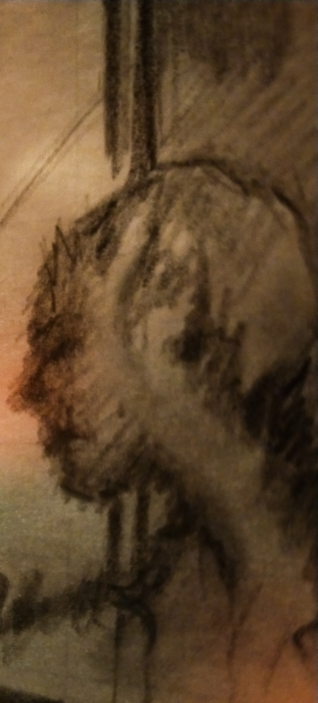 August doesn’t come right in to the room but stays leaning against the doorframe. He looks roughly my age (approaching thirty) - pale, underweight. Clothes hang loosely from bony hips and shoulders. His hair is sandy-coloured, thin and long at the back. A few wisps remain on the top of his head.