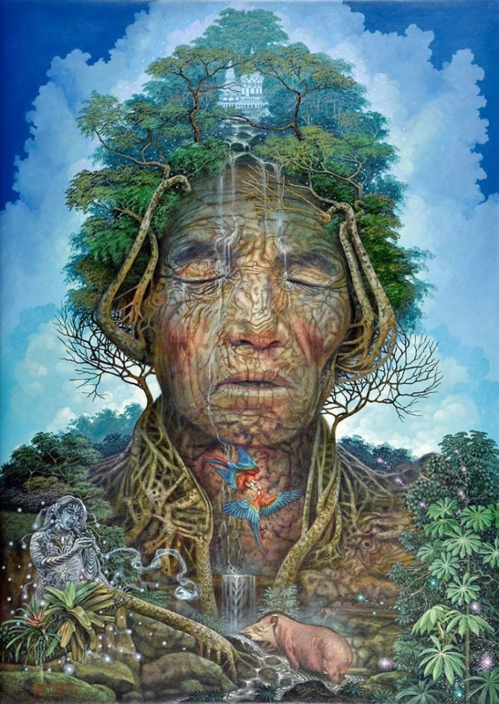 The tree had stood in the same place for 111 years. And though to outsiders it appeared untouched except by the occasional wrath of a thunderstorm, this wasn't the case. The sounds of the forest touched the tree, the stories carried throughout the inner systems and up by the roots touched the tree, the rays of the sun touched the tree and most of all, the observations the tree made touched him down to his core. 111 years of observations but never had he quite experienced what was going on with the human that stood before him. By some stark miracle, the human stood before him seeing him for what he was, a plethora of multifaceted primordial energetic wisdom.