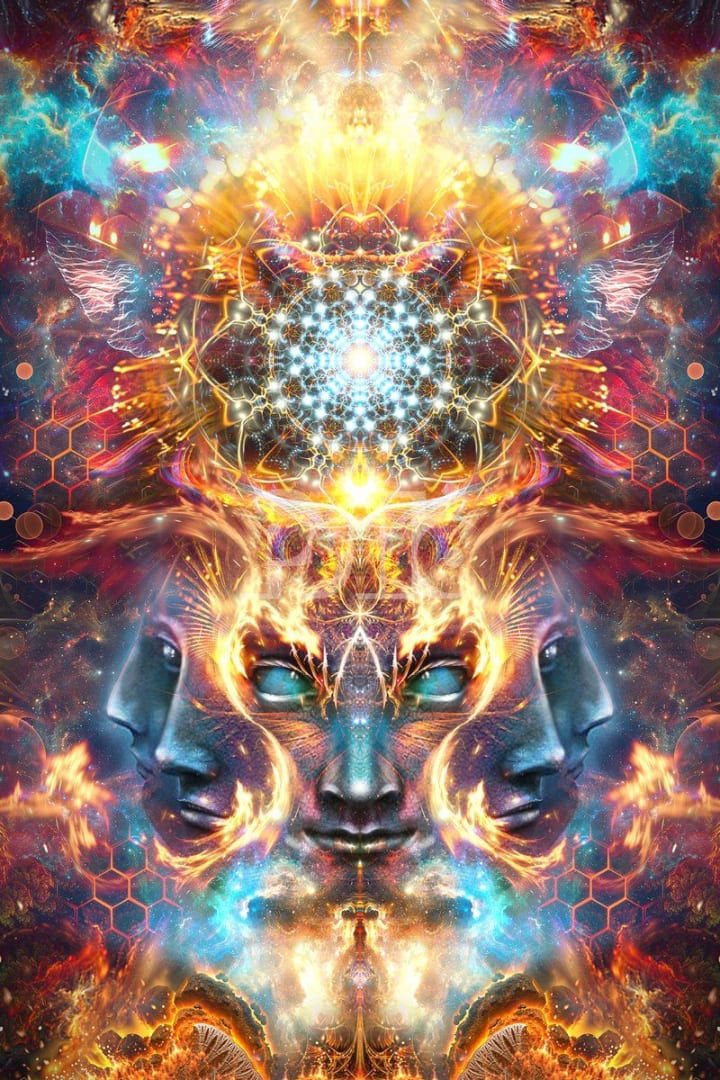 A smile crept across the (unorthodox) monk's face. She stood firmly as the bridge between everyday waking reality and the not-so-subtle dimension that the vast majority of humans lived their day-to-day existence unaware of. Like everything woven together so intentionally so intricately, so too was her role in the Universe. At first, she spent the majority of her time playing in and exploring the unseen. Too much of anything however can tip the scales undesirably. Her journey was one of cultivating balance. Diving inward and outwards, Talking to plants and people. Sitting in meditation serenaded by the organic symphony of the forest, and making perfectly curated playlists for moments like this. She had spent the last month compassionately yet indifferently watching the man search desperately for the light of truth, Saw the looks of certainty on the faces of the kingsmen and intellects claiming to know the secrets of the pathway to light. She watched as the man desperately clawed through book after book, downed one concoction after another, and exhausted every hedonistic urge in his body, waiting on her cue from the forest. When it manifested in the form of a single mushroom she was ready.