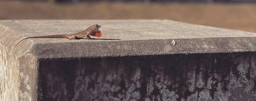 A sudden gasp of air was initiated by a small brownish lizard that crawled across Percival’s slumbered lips and then rested on the same concrete brick at Percival's eye level. Surely he must have been dreaming. The lizard’s mouth parted. It’s throat expanded with air and croaked out the most lovely sound he had heard in over sixty years, a voice that sounded extremely familiar to his late grandmother, Lily.