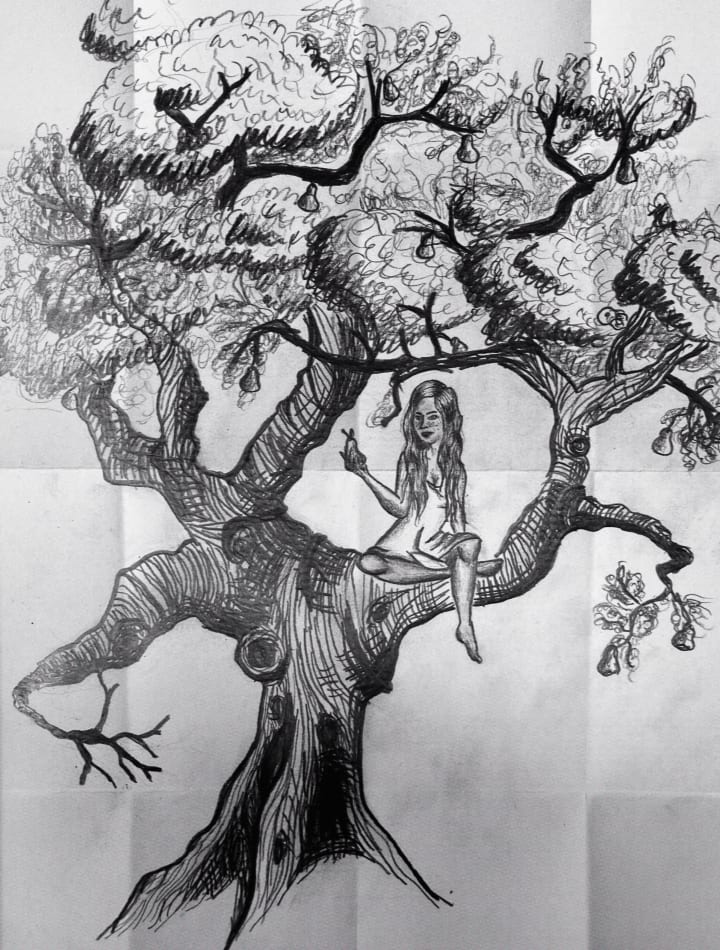 Then she climbed up the tree, muscle memory swiftly guiding her feet to the folds in the trunk, and sat down on her favourite branch, getting comfortable in its cosy nook.