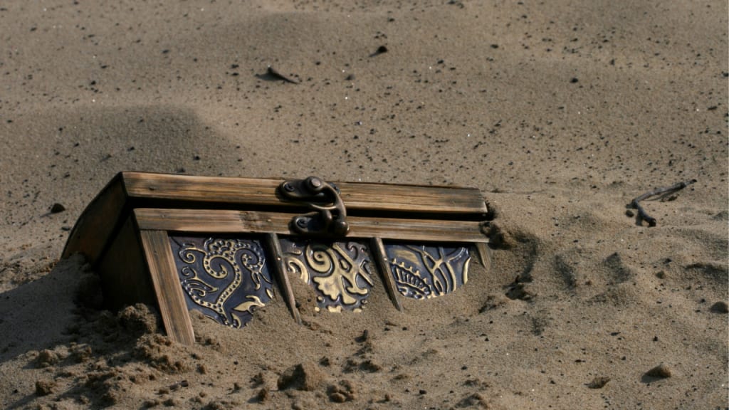 Rasha turned his attention towards the chest. Now he had time to examine it properly, he could see it was even more richly decorated than he thought. Beautiful carvings of dragons danced around the sides of the chest, each holding another dragon's tail in its mouth. On the lid, a solitary human bravely stood his ground against a noble dragon, rearing heavenward with a blazing sun in the background. Encrusted jewels replaced eyes with brilliant sapphires and dazzling emeralds for the dragons and two gleaming rubies for the humans. There didn’t appear to be a lock, but as Rasha reached for the clasps, he heard the distinct click of a hidden mechanism releasing. Holding his breath, he lifted the lid.