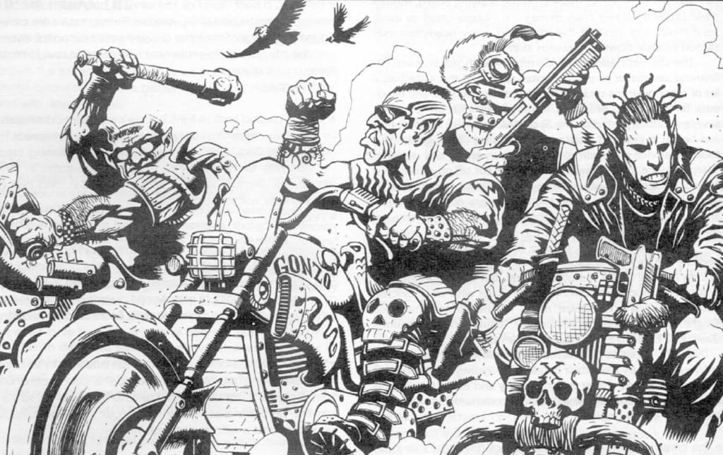 Wizard quietly eased over to Ines from behind and put both his arms around her. There was no reaction, and when he peered at the monitor over her shoulder he understood why. There was Stone and his Raging Bull gang riding by. Why were they here? Just then one of his scouts stopped his bike and got off signaling for the gang to stop. He then went over to Stone and started talking to him and pointing in the direction of their last campsite. They were obviously hunting him. So, that's why they didn't pursue recruiting him and his friends at the old outpost station. Everyone had heard him politely refuse and they had left him alone, then, only to hunt him later and press him into service.