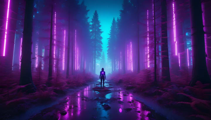 The surface of each tree started to turn into the color of violet glittering lights shifting into blue, purple, pink, and yellow natural lightness.