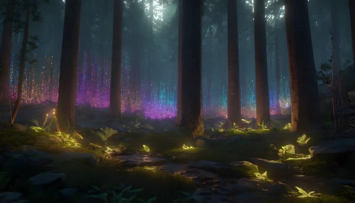 The forest just in a moment was covered in all kinds of colours and lights giving a touch of a pure fairytale land for the girl to be in and to admire.