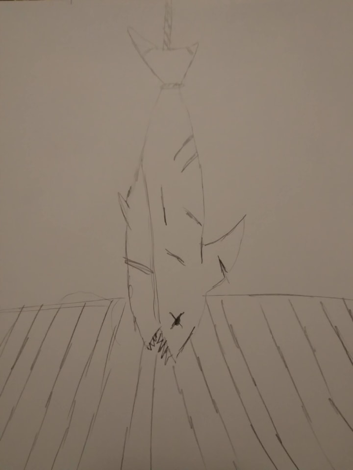 When I stop moving, something pulls me towards the enormous shadow. My body leaves the water for the first time. I want the water back, but I can’t move toward it.