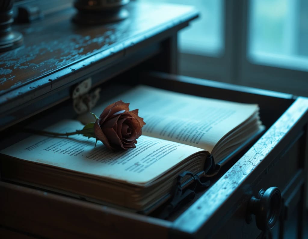 It was a small leather-bound book, deep blue, edges worn. A single rose was pressed between the last few pages. I recognized it immediately—it was from that picnic in early spring. The one where she laughed so hard she choked on lemonade and made me promise I’d never bring up her ugly snort-laugh again.