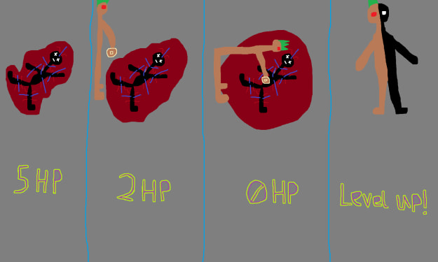 A few brief moments of silence were all that was allotted before the mayor burst into a fit of screams and cries that dwarfed those of the previous tree person. And along with his cries of anguish, the crowd could see the bones and flesh of the mayor randomly fall off or pop out of his body, only to regrow instantly. Gallons of blood poured out of the mayor as his blood supply miraculously replenished itself time and time again. In fact, every part of the mayors' body had fallen off or out of the mayor several times by now. And yet, the mayor lived. He was constantly falling apart and replenishing those lost parts at the same time.