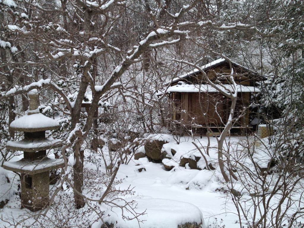 With the edibles to the side, he took the hanging pot out to fill with snow. As he opened the front door, he cocked his head in confusion. He spotted his own footprints clearly in the snow, now partially filled, but there were no tracks from the woman. A chill unrelated to a winter night rattled him as he stared at the woman’s shadow dancing on the paper door to his bedroom.