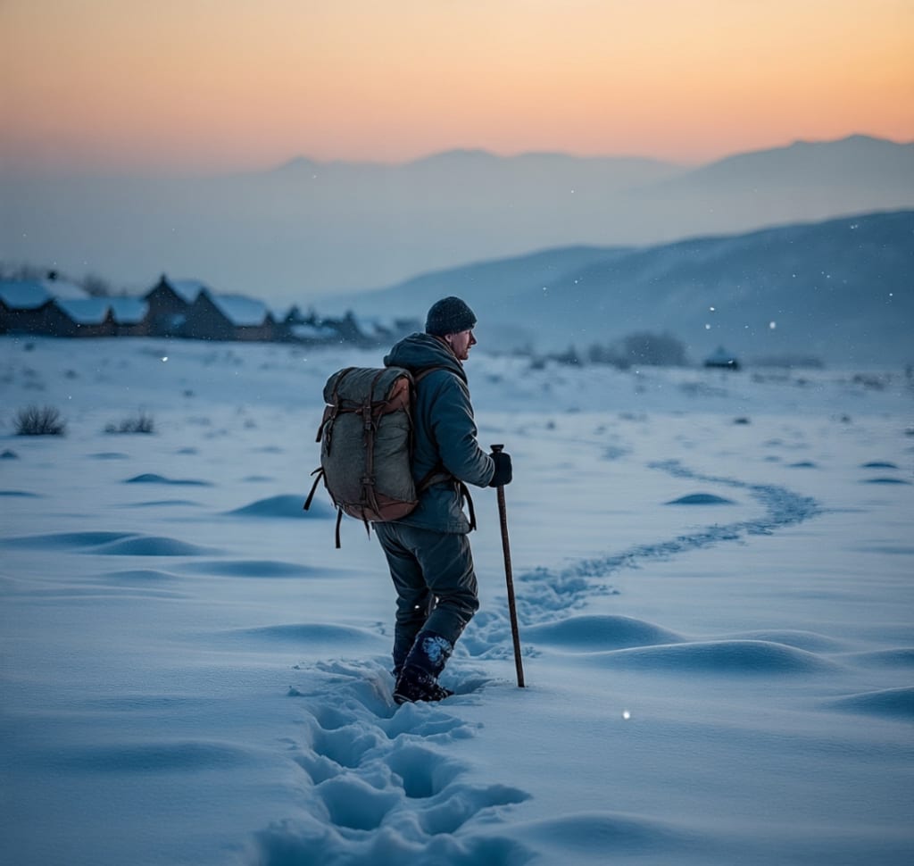 The snow began to fall just outside the town of Elmsworth, soft as whispers and cold as regret. Leo tightened the straps on his pack and pulled his scarf higher up his face, his breath forming small clouds that vanished into the pale blue air. He had been walking for hours, maybe days—it was hard to tell anymore. Time moved differently when the world was white and quiet.