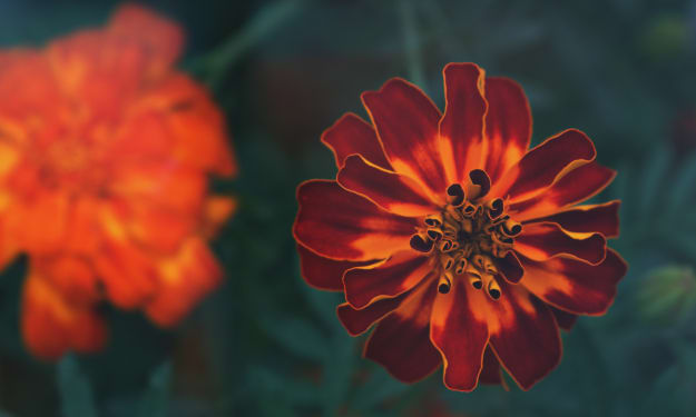 Lucan couldn't help but cast a tender smile in her direction, “well, I was looking for you” he answered with a sigh of contentment. Happy in the knowledge that she was in here in body, but not in spirit. He put his hand in hers and felt a jagged sharp edge cut through his skin and draw blood. He flinched and jumped half a metre away from her. The petrified marigold flower from above, sitting perfectly in the palm of her hand.