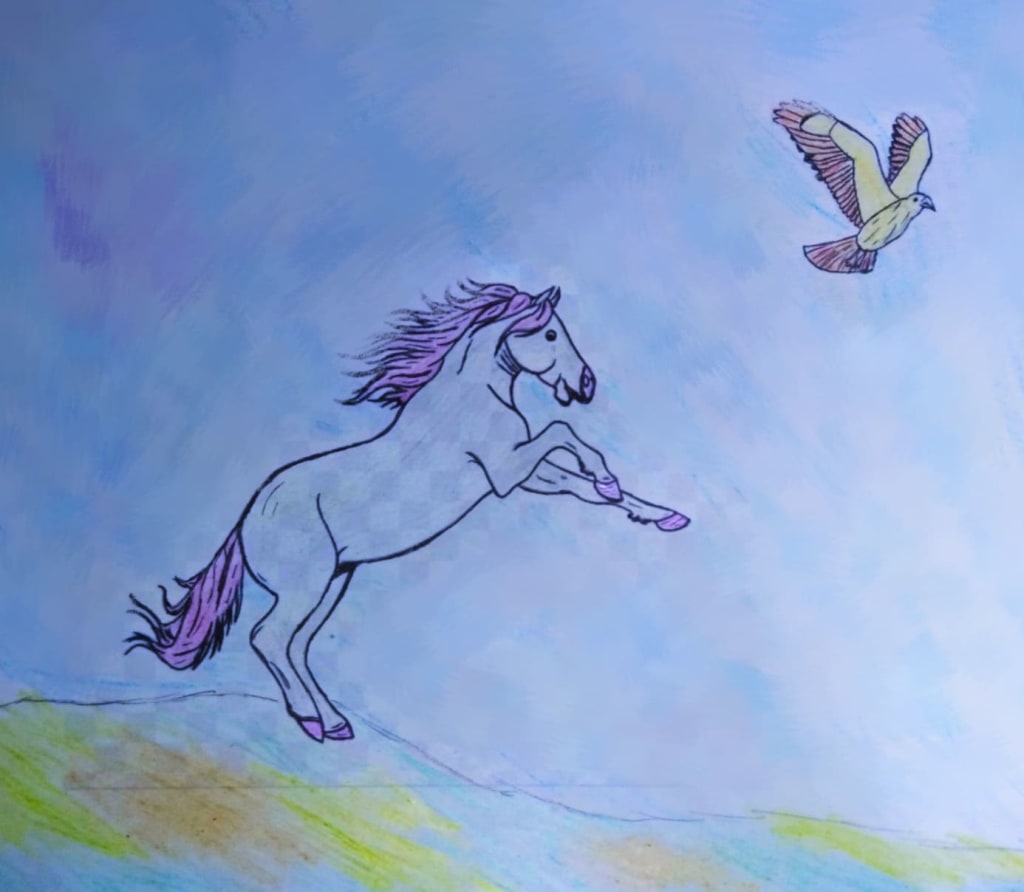When the first summer sun rose, it was time. It was time for Arlo to soar though the sky again. It was time for Ava to gallop through the open plains. As the wind blew through their feathers and mane, they galloped and soared together. They were each other’s family now. They had bested tragedy, with compassion and bravery. Which in turn, had been rewarded with a second chance of love, friendship and happiness once again.