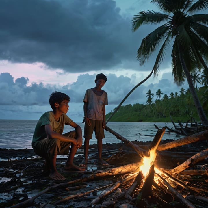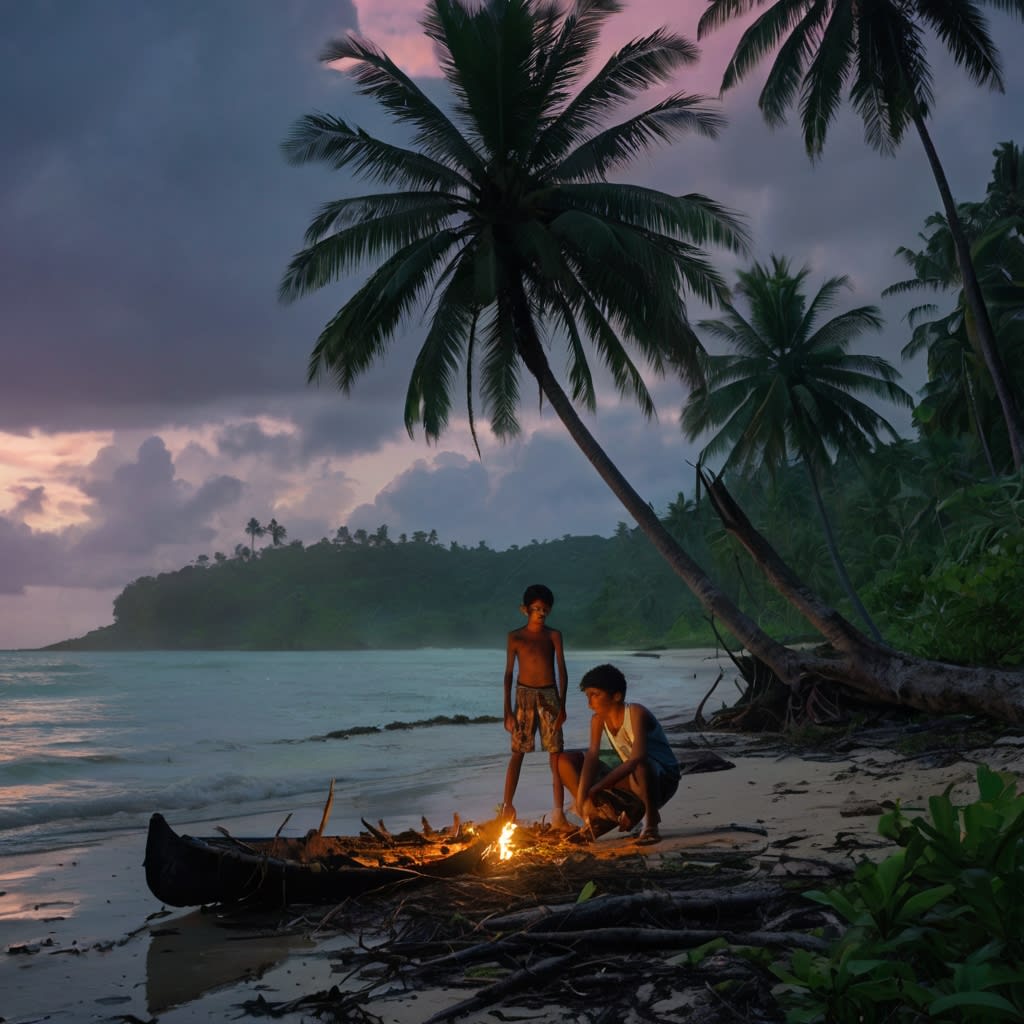 Two teenage boys find themselves marooned on a remote tropical island after their fishing boat capsizes in a violent storm. With no immediate hope of rescue, they rely on each other to survive. Amid the dense jungle and wreckage, they build a shelter, gather food, and fend off their fears. Despite the overwhelming isolation, their resilience and friendship grow stronger, symbolizing hope and human spirit even in the toughest situations.