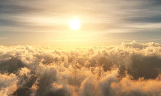 The crystal clear waters barely lapped at my unclothed feet, and the place seemed to be frozen in the Dawn of the Morning. Light blue hues crested the gentle surrounding clouds, and the mist before me faded as the Golden Gate shined brightly before me, as if to welcome me home. The Gate was a lot taller than I expected... I had to crane my neck backwards, and even then I couldn't see the top of it. Did giants cross this threshold too, I wondered silently with a small snicker. The Gate creaked as it slowly opened, unaided, allowing me entry and beckoning me to enter. No one was here. Wasn't there supposed to be a Gatekeeper? Where was the fabled St. Peter? Shrugging, I slipped inside, and the Gate slammed shut as the metal clang of finality echoed around me. I blinked as the fog surrounding the Gate dissipated. Looking around, I saw the vast beauty and light hues of the rainbow in the immediate area, and yet, still I was refused a greeting by anyone. No St. Peter, no Angels, nothing. I began walking, in hopes that I might find someone to talk to. There had to be someone here, right? The gentle clouds clustered around my feet like dust, coming up in small swirls and attempting to attach themselves to my ankles in desperation, if only to be washed away by the rising tide below. The clear waters nearly covered my feet now, I noticed. Still, it was calming.