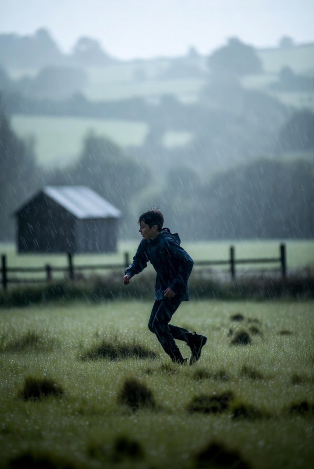 “Damn!” Jay was already drenched. He scanned the surrounding area. An old barn stood around thirty metres away. It was much closer than his grandfather’s house. Jay ran towards it, shoulders hunched, head down, as if this posture would somehow keep him dryer.