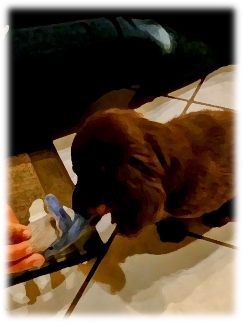 She knelt beside the creature and whispered. “This is Olli, Coco. Olli, this is Coco.”