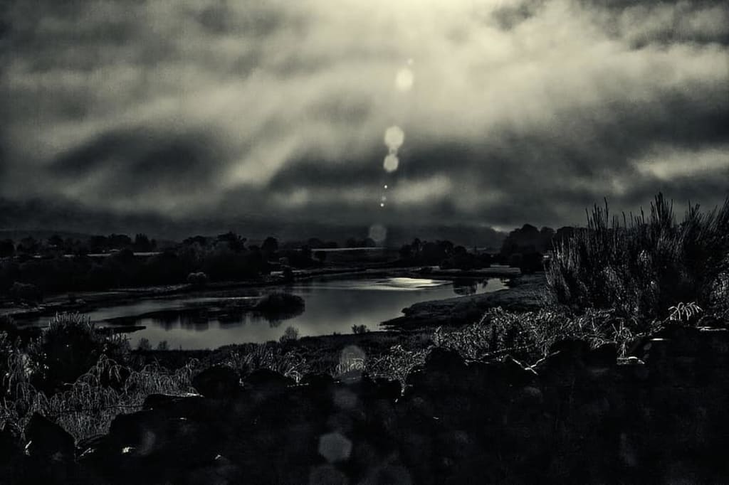 On the lake, Mother stood at the back of the black motorboat, its engine nearly silent, leaving a pristine “V” behind them on the glass surface of Black Lake. Her face was stern, her hair done ceremoniously in lace matching her black and velvet robes. Heidi wore it’s twin, but her hair was undone. Night had fallen, and a lantern did little to push back the darkness that seemed to cling to the lake. Heidi sat near the front of the vessel, as the space between her and Mother was taken by a large lump of scratchy paper that only two weeks ago, Heidi would have felt proud to have helped Mother with.