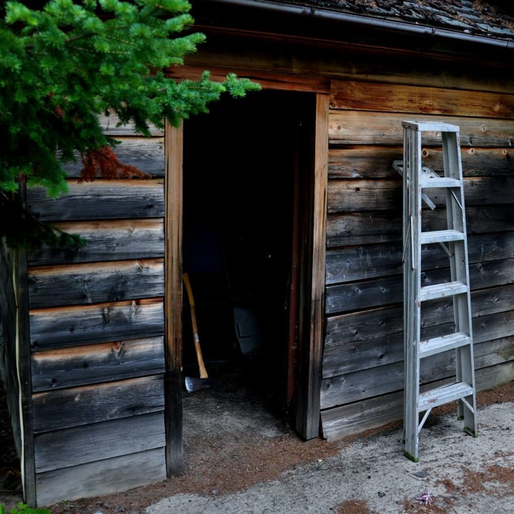 Slowly they stepped with Ram leading the way, pitiful flashlight in hand and Jen following with one hand on his back. As they approached the door, they could see that it was also freed from its two-by-four bindings and slightly ajar. A metal ladder stood between the window and the doorframe. More evidence that someone was there.