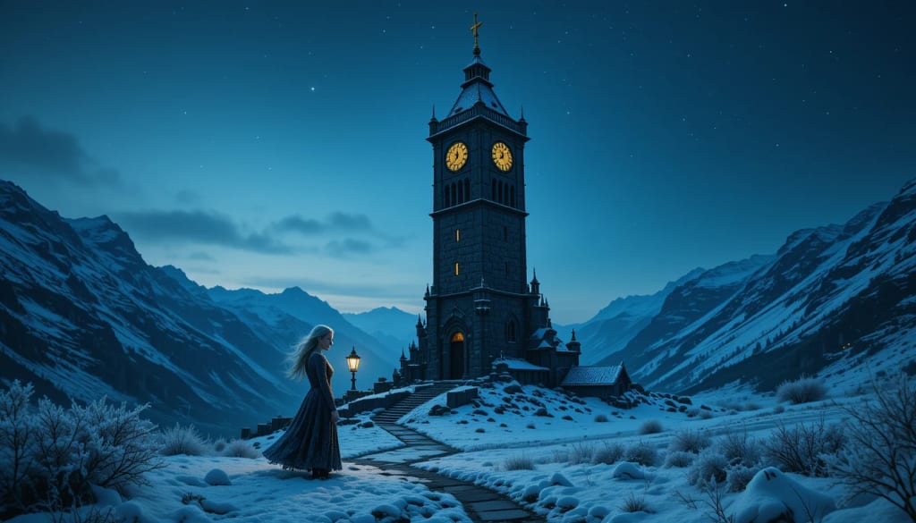 Nestled in the frostbitten valley of Glimmerfall, where the river sang beneath a crust of ice, stood a town that lived by the tick of its clocks. Glimmerfall’s heart was its clocktower, a spire of blackened stone that loomed over slate-roofed houses, its chimes marking every hour with unshakable precision. The townsfolk said the tower was a gift from the Clockmaker, a mysterious figure who’d built it centuries ago to keep time—and secrets—safe. But in Glimmerfall, time had a way of standing still, and secrets had a way of festering.