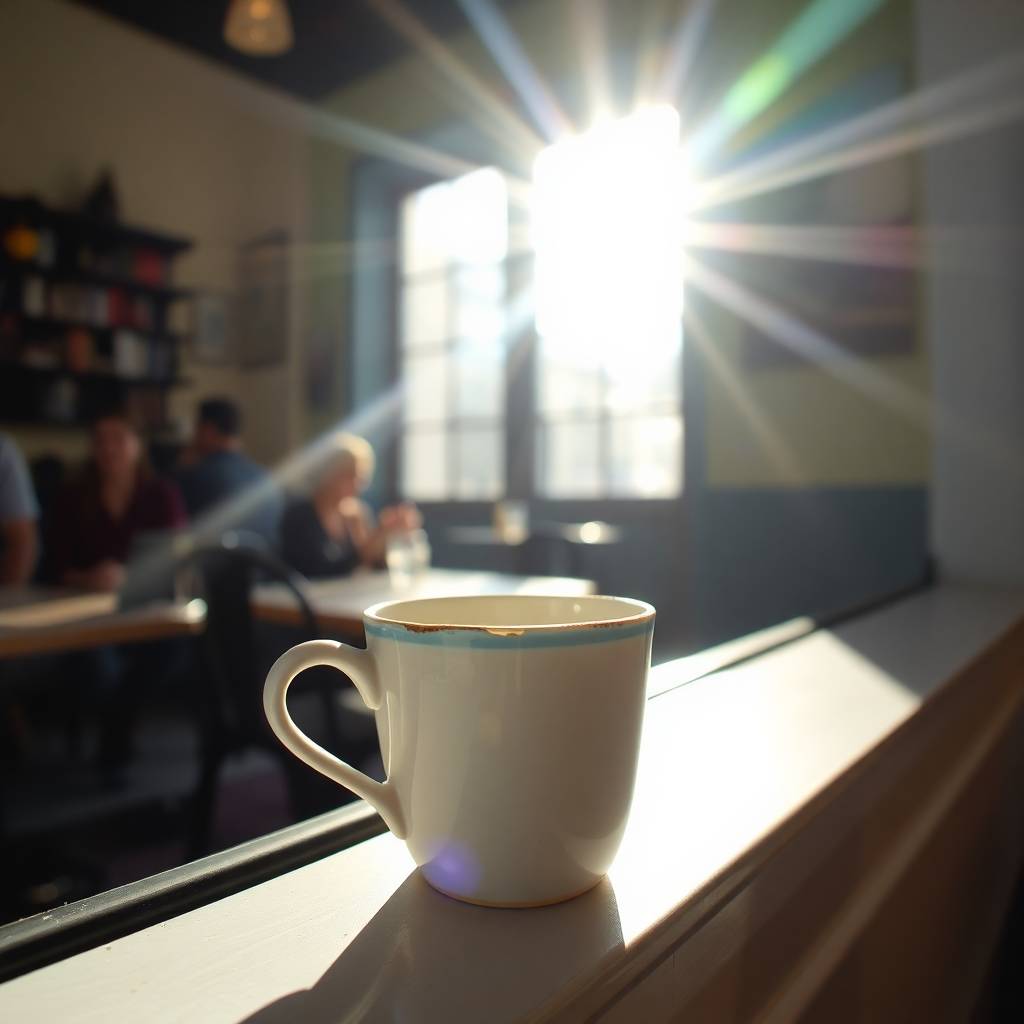 It sat on the windowsill of the little café I sometimes escaped to when I needed quiet. The cup wasn’t anything special — chipped white ceramic with a faint blue ring around the rim. It looked as though it had been forgotten, maybe set down by someone who had stepped out for a smoke and never returned. But there it was, catching the soft light that spilled through the glass, and for reasons I couldn’t explain, I couldn’t stop looking at it.