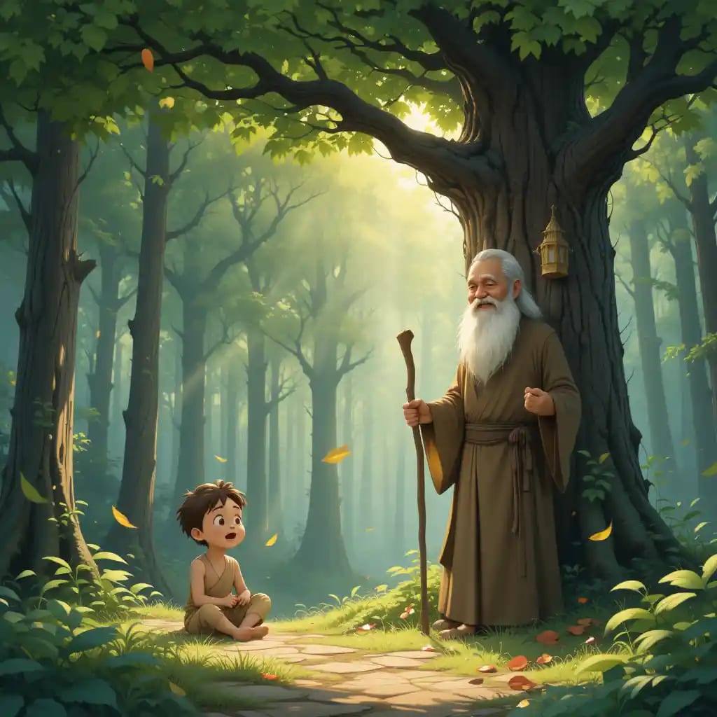 A young boy, burdened by life’s hardships, escapes into a forest seeking solace. There, he encounters a mysterious old man whose simple words unlock a powerful truth, giving the boy courage to embrace life anew.