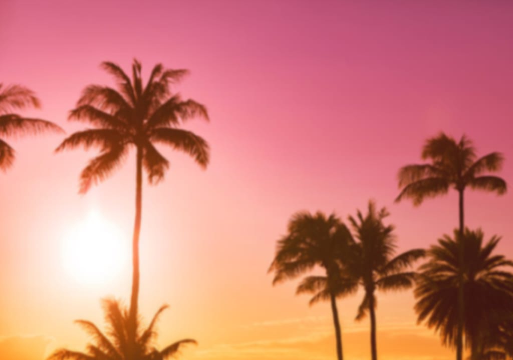 Standing in my kitchen, I looked out the window. The sun was hanging low, the sky was pink it was an Indian summer type of day. The palms were swaying in an eerie way bending in the whistling wind. A Saint Bernard dog ran down the road, and then started chasing its tail.