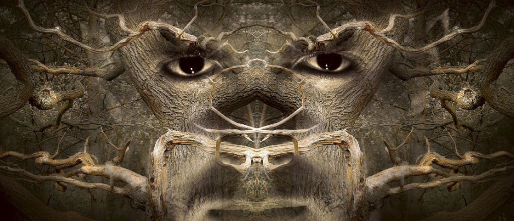 I hear, or feel, or whatever, “Hold still young man as you are perfectly safe and within my protection. I am the Guardian of the Forest and I guard these grounds from all evil. Your thoughts are pure and therefore welcome. However the man that followed you, did so with ill intentions to both you and the surrounding trees. Hence why my assistant has taken the liberty of a fresh meal. Stay awhile and relax. You, my friend are welcome here anytime.”