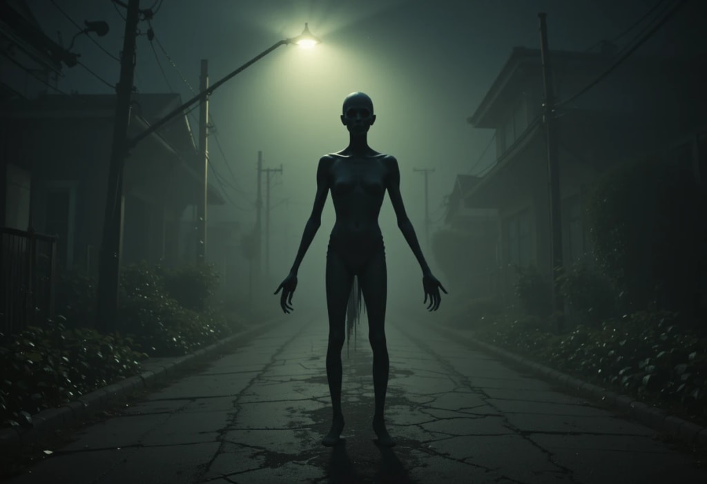 He was standing under the light, his form tall and slim, almost impossibly so. His face was in shadow, but I could feel his eyes on me, watching, waiting. I told myself it was only my imagination, that the long day and lack of sleep were playing tricks on me. But as I walked past, I heard it—a low, guttural murmur that sent a shudder down my spine.
