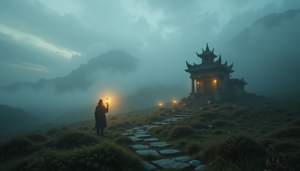 After what felt like hours, the light stopped. Amara froze. Before her stood a figure, cloaked in shadow, holding a lantern that burned with an unearthly flame. The figure was tall, its face obscured, but its presence was heavy, like the air before a storm.