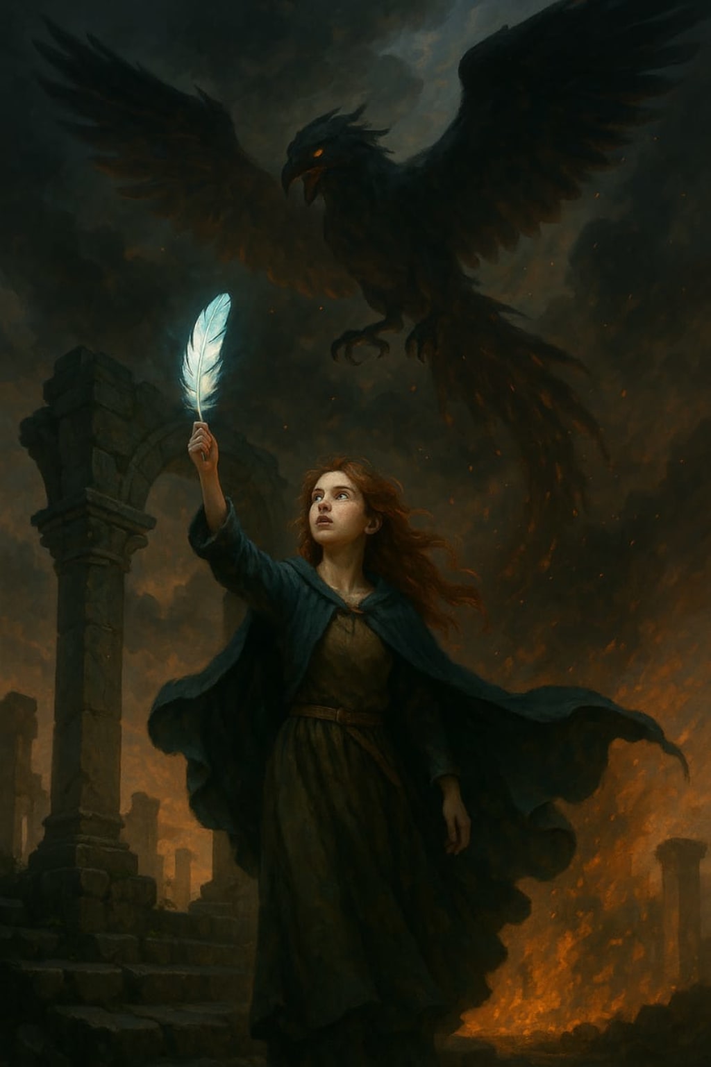 The bird cocked its head and fluttered to her shoulder. That night, Kaela dreamed of a silver feather, floating above a burning sea. In the dream, she reached for it, and it burned her fingers—but did not destroy them.