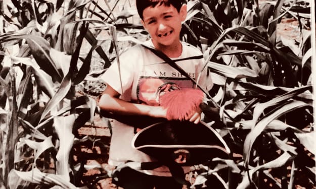 For someone who wasn't always around a lot of people his age growing up, Tim was shy of ten when he discovered the hole in the barn in his grandparent's back property. Tim would spend his summer playing in the mud, catching rollie pollies and pretending he was on a great adventure in the backyard as he cut through the tall grass with his mighty stick from the peach tree. But one day Tim came across something; it had always been there but some how it was new to him. Like when you hear a word for the first time and all the sudden you notice it in every other conversation. The light reflected off the bends in a bullet hole on the side of the tall, rustic-red, corrugated metal and wood barn. Tim put down his pretend stick and walked over to the hole, just large enough for him to look into.