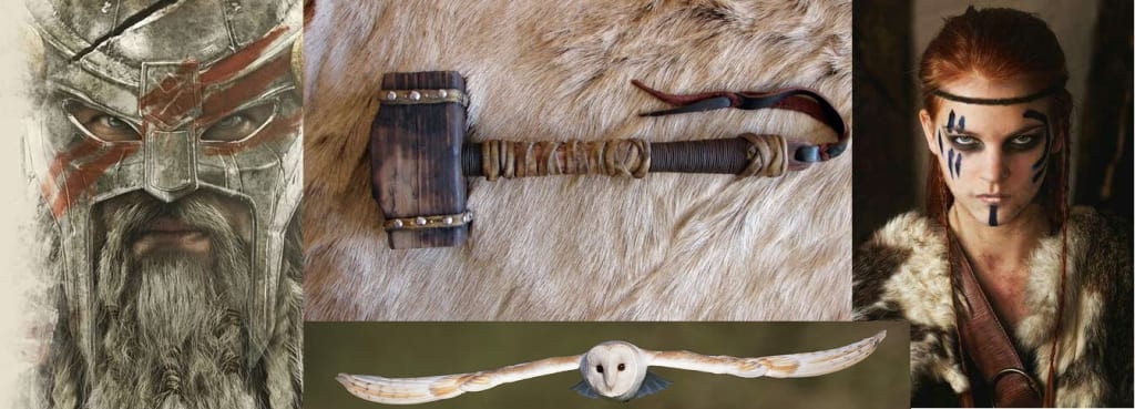 Gliding silently across the hard-packed earthen floor of his hut, Ulf held the hammer at the ready willing to attack whatever or whoever was out there. Careful to look away from the fire in the fireplace Ulf’s eyes gradually adjusted to the darkness near the door. Then the barn owl on his shoulder was suddenly airborne flying directly out the door. With the rush of wind and movement from the owl, Ulf followed swiftly breeching the open space.