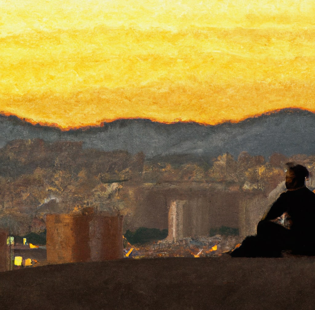 A young man slouches atop a hill overlooking his city and sighs: “My life is moving too fast, and I am afraid.”