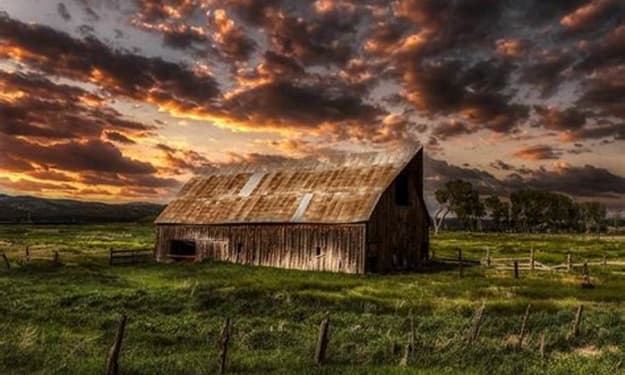 Back onto the pile of hay he had arranged the night before he lay, lazily trying to discern if the small sound of light tapping upon the metal roof above his head was rain drops falling, or squirrels skittering across the roof from the fallen oak tree. To his delight, the taps increased, and he knew without a doubt that the sounds were raindrops falling on the old barn roof.