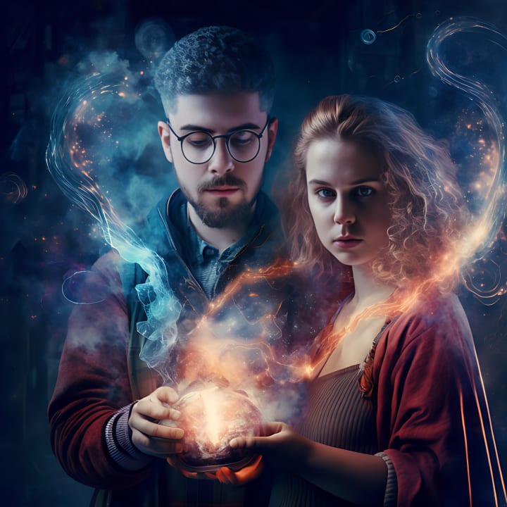 However, Christi's love for Thomas only grew stronger. She was proud of his powers and encouraged him to use them for good. the Thomas gave half of his power to Christi So, they used their powers to help those in need, and their fame as the magic-wielding couple spread throughout the land. They continued to travel, and wherever they went, they brought hope and joy to those around them. People would come to them with their problems, and Christi and Thomas would use their powers to help them.