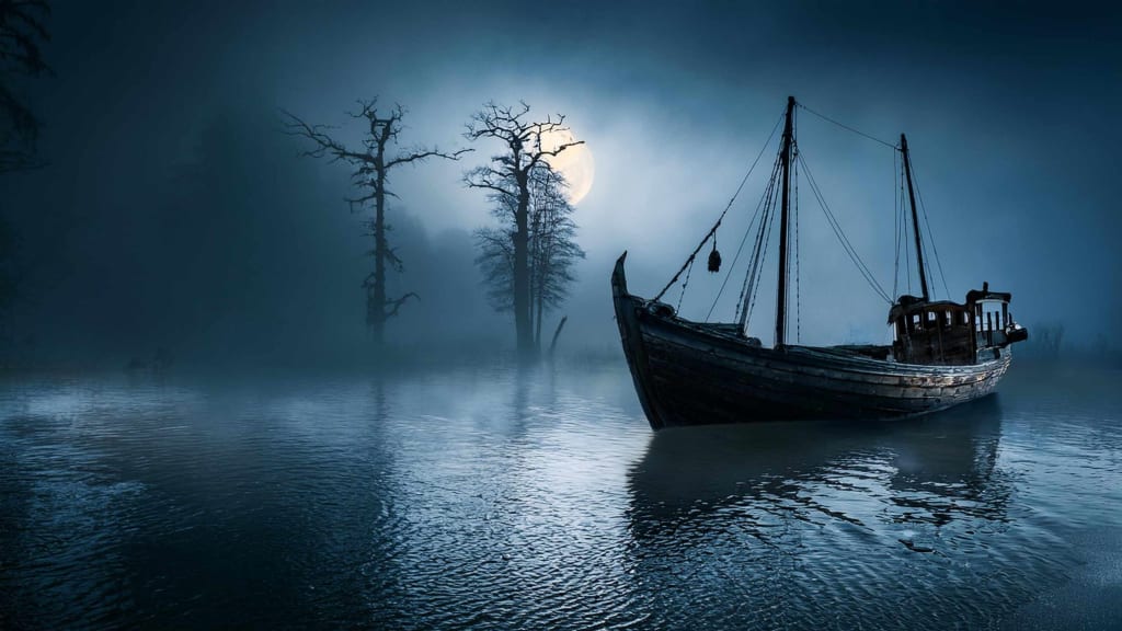 Under the faint glow of the moon, a lake shimmered like glass on the outskirts of a peaceful village shrouded in fog. It was seldom visited by the villagers, especially after dark. They talked about weird things happening on the lake, like the sound of a boat appearing and then vanishes.