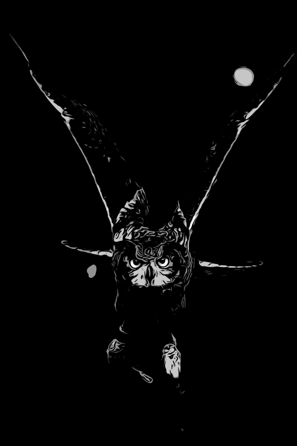 With his heartbeat thumping like a toll bell in his ears he gathered the strength to look above him at what was holding him a hundred feet above the remains of his family’s ancient barn. The white feathers were now outlined with the silver light of the moon as the tiny creature stared back at him with wide golden eyes. It held on to his coveralls with just one tiny clawed foot.