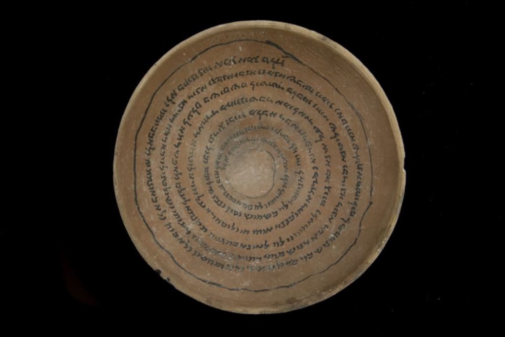 "Yes. It’s real copy. An ancient stone box was found at the Ein Dor excavation in Northern adorned with Egyptian, Sumerian, and Jewish runes. Inside the box was the magic bowl," she said, "The incantation magically transforms to the language of the one in possession."