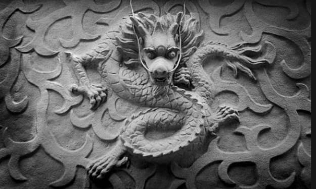 Tea finished and the Sorceress bade the Sandman and the Sea Girl to rise and follow her, out the back of the cottage into the woods. About fifty yards into the trees the say two stone dragons, well they looked like dinosaurs to the Sea Girl.