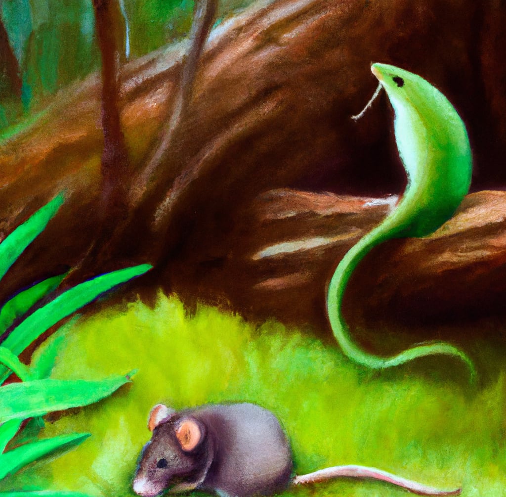 Mr. Mouse liked to live dangerously, enjoying the thrill of the chase and outsmarting his pursuers. The birds were too clumsy, and the cats were too big, but the snakes were the perfect rivals. They were quiet, and they were sneaky, but they were never quiet or sneaky enough to catch Mr. Mouse!