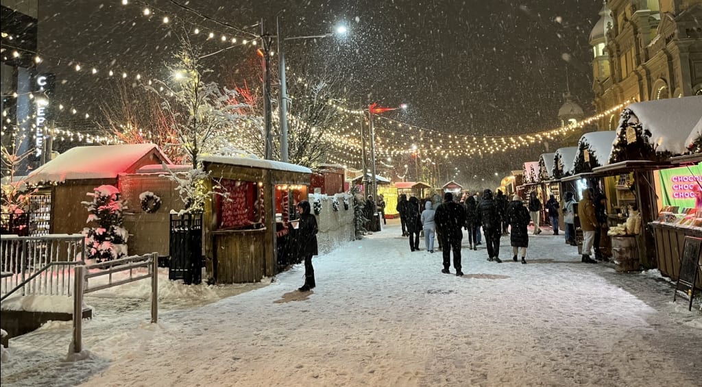 Warm Christmas lights decorated the entire street, casting a comforting glow across the street that felt like childhood. Booths of all sorts lined the middle of the scenic downtown. People sold chocolates, food, ornaments, absolutely everything, but there was one thing he wanted more than the rest.