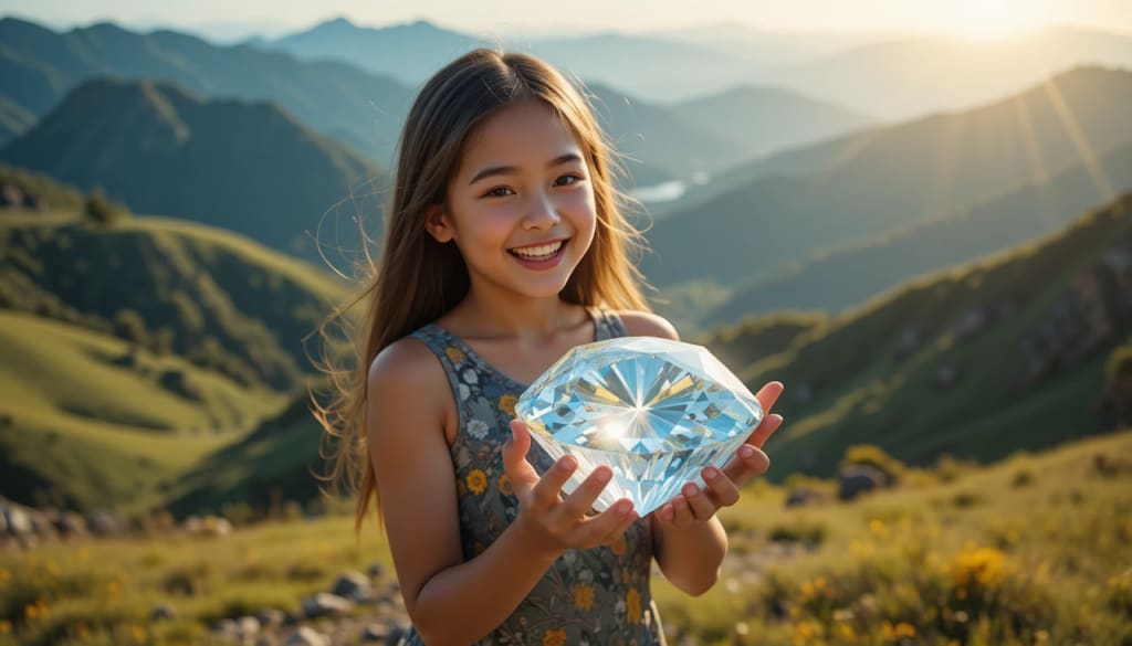 She gently picked up the diamond with both hands. It felt cool and heavy. The sunlight danced inside it, creating colors she had never imagined. Lina could not believe her eyes. She laughed, then covered her mouth in shock. Tears of happiness filled her eyes.