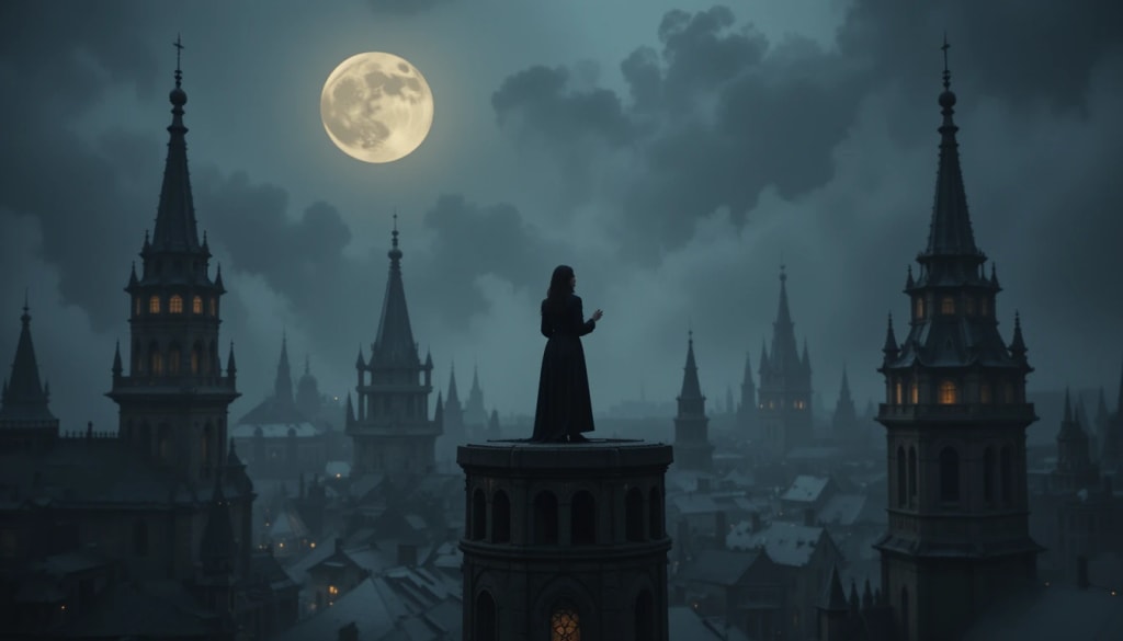 Under cover of night, Mira crept to the cathedral, the locket warm against her chest. The doors were locked, but a rusted grate in the alley led to the undercroft. She squeezed through, her boots echoing in the dark. The air was thick with the scent of wax and stone, and the faint hum of the locket guided her to a spiral stair. She climbed, her pulse a drumbeat, until she reached the belltower.