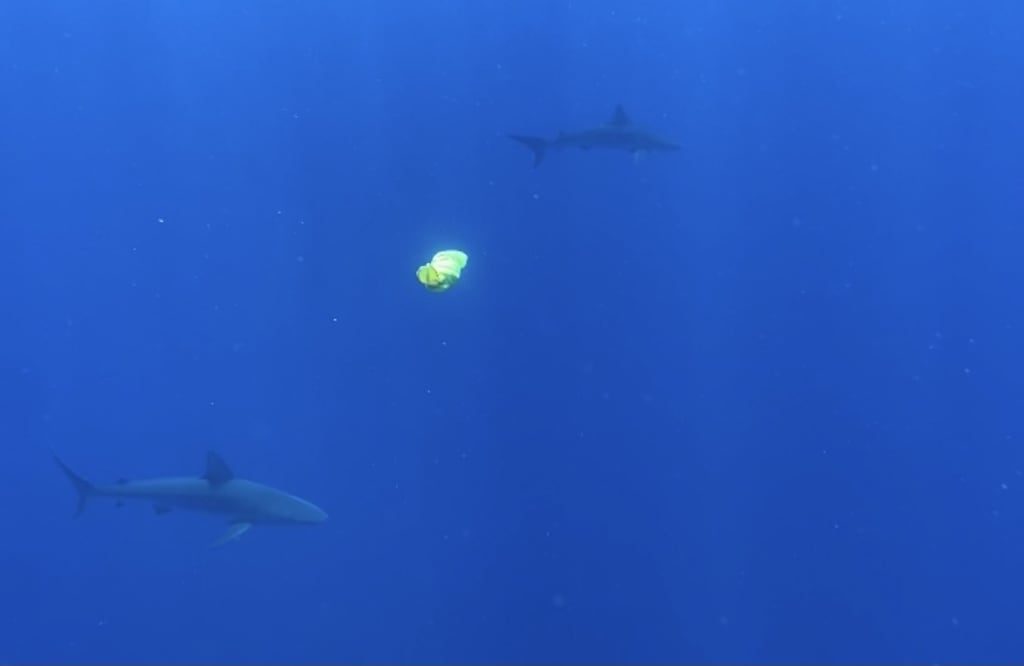 Ivy a young blue shark pup woke up one morning and her mother warned her of the upcoming swarms of humans that enter the water every summer and not to get close to the shores because they will try and hurt us. Of course, Ivy as any pup would have a million questions for her mother. why do they want to hurt us? ivy asked. Luna explained that as a shark, humans are trained to fear us, not knowing we truly mean no harm. ivy young and confused did not seem that was fair but went upon her day. the next day ivy noticed a lot of commotion amongst the other sea life. curios, she wanted to see for herself what was going on. she noticed something sitting on the shore and observed from a far. what is this thing with four legs swimming thru the waters? it has a fin like tail that wags and helps it swim is it a sea animal she is never seen before? she continued to observe until the creature left. that night she told her mom what she saw. Luna after telling her to stay away from the shores was angry but also wanted to be understanding and explained to ivy that it was a dog. a land puppy. fascinated. ivy wanted to know everything about this land puppy. for the next few days ivy watched the shores from a distance observing the actions of this land puppy. it is so cute she thought to herself I just need a closer look. as she slow approached the shoreline her excitement was hard to restrain. she creeped up to a large rock coral the land pup was feet away. the puppy noticed ivy out of the corner of his eye and excited as well hopped over to the coral rock to investigate. ivy frightened quickly tried to swim away but was stuck in some sort of net she is never seen before. ivy began to panic yelp for her mom and tried as hard as she could to get free but just made it worse. the land pup slowly approached ivy and said calm down I will help you. ivy confused panicked even more until she finally gave up trying to free herself. the land pup said hi I am Odin I will not hurt you I promise. ivy having no other choice allowed the pup to help. after Odin chewed the net where she was stuck ivy was finally free. thank you so much that was so nice of your ivy could not stop saying. Odin glad he was able to help replied I have a ball you want to play? that sounds like fun ivy said the two of them swam and played for hours playing catching with Odin’s big yellow ball because sharks see contrast this was an amazing time for ivy. The two pups played until the sun began to set. I must go home before my mom gets mad at me Odin said. Me too replied Ivy. I had a lot of fun today; do you want to be my friend Odin asked. WOW shouted Ivy; I have never had a friend before SURE! Ill meet you here tomorrow Odin yelled as he ran towards the crowds of people. The two meet up the next day and talked for hours they laughed they played, they swam off to different parts of the waters, Ivy even caught a fish from them to eat for lunch. The two of them continued to hang out all summer they were inseparable. Literally became best friends. As summer came to an end, the two of them could not stand the thought of not being able to see each other for so long. We must make a promise to come back to this same exact place the same time next year. The two of them said their goodbyes and sadly had to swim away for the last time.