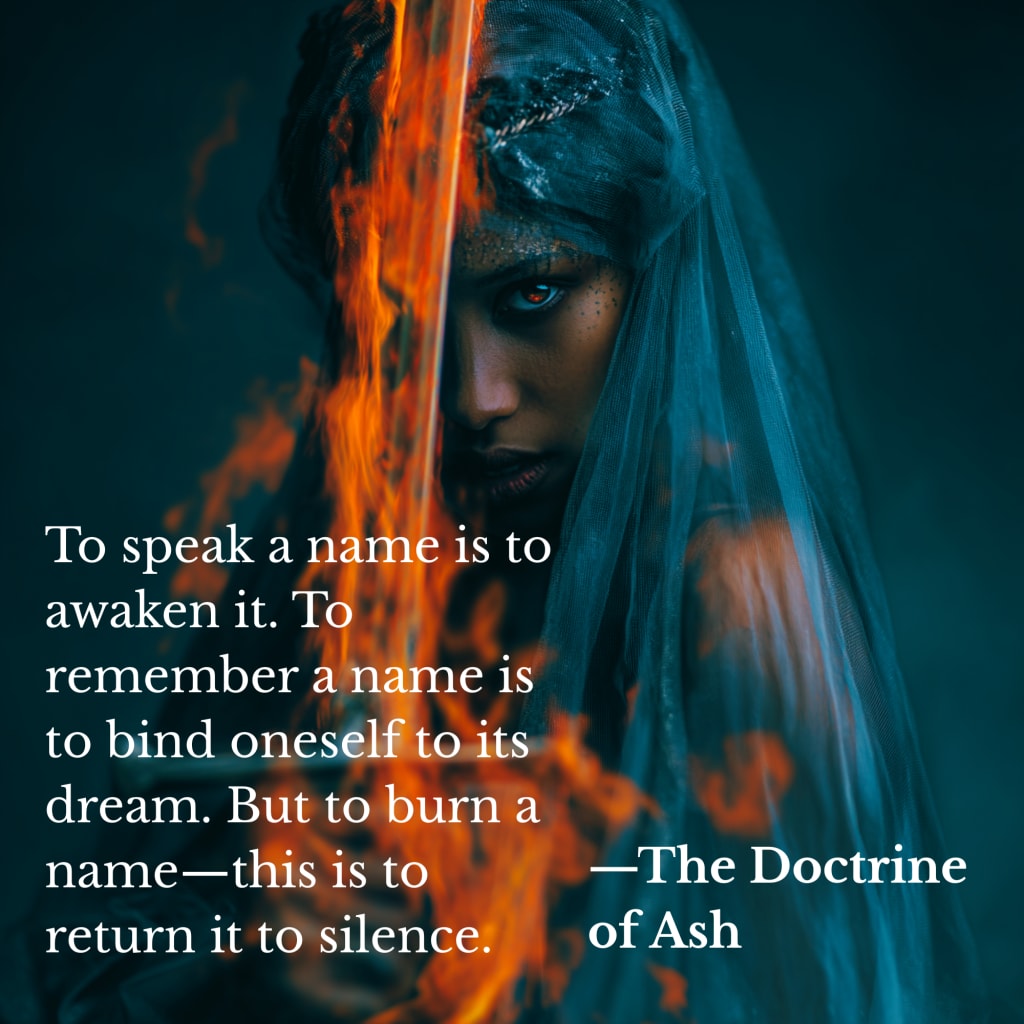 An excerpt from the Book of Still Waters, the Dominion’s oldest surviving scripture. It is whispered during the rites of silence, when mirrors are veiled and all reflective surfaces turned face down.