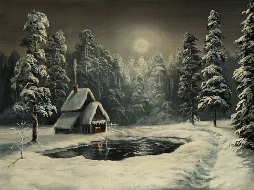 Then Winter came. The Pond, in which she had bathed in the sunlight, began to freeze. The freezing winds blew through where windows should have been. She wanted so badly to fix them, but knew they were perfect the way they were. That somehow the pain of the freeze, matched the pain of her forever loss. Still, she sat, staring at the Pond as it froze, and walked around the path, asking herself, “Why?”. She asked the frozen Pond, she asked the Path, she asked the walls of the Hut, and finally, she began to ask her child. None gave an answer. But she had begun to know, there was one.
